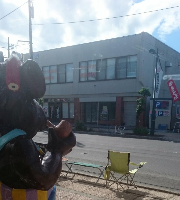 会社前には 座って見られるように簡易的なベンチのような席も用意し 準備万端です。